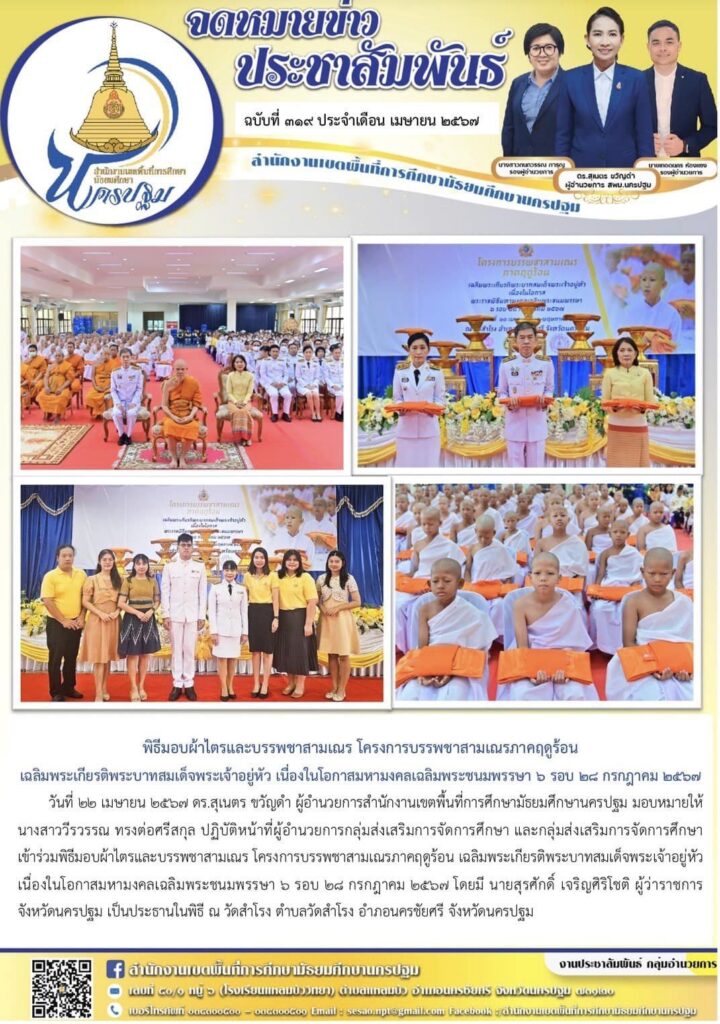 พิธีมอบผ้าไตรและบรรพชาสามเณร โครงการบรรพชาสามเณรภาคฤดูร้อน เฉลิมพระเกียรติพระบาทสมเด็จพระเจ้าอยู่หัว เนื่องในโอกาสมหามงคลเฉลิมพระชนมพรรษา ๖ รอบ ๒๘ กรกฎาคม ๒๕๖๗ 04/22/202404/22/2024 ประชา สัมพันธ์ จดหมายข่าวเขต Views: 264 ประชา สัมพันธ์