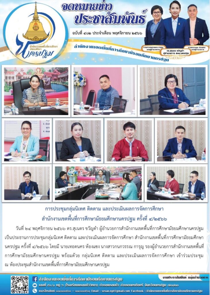 การประชุมกลุ่มนิเทศ ติดตาม และประเมินผลการจัดการศึกษา สำนักงานเขตพื้นที่การศึกษามัธยมศึกษานครปฐม ครั้งที่ ๔/๒๕๖๖ 11/24/202312/13/2023 ประชา สัมพันธ์ จดหมายข่าวเขต Views: 168 ประชา สัมพันธ์