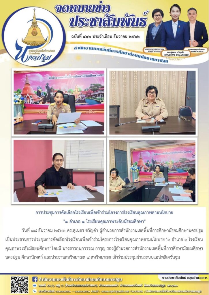 การประชุมการคัดเลือกโรงเรียนเพื่อเข้าร่วมโครงการโรงเรียนคุณภาพตามนโยบาย “๑ อำเภอ ๑ โรงเรียนคุณภาพระดับมัธยมศึกษา” 12/18/202312/19/2023 ประชา สัมพันธ์ จดหมายข่าวเขต Views: 444 ประชา สัมพันธ์