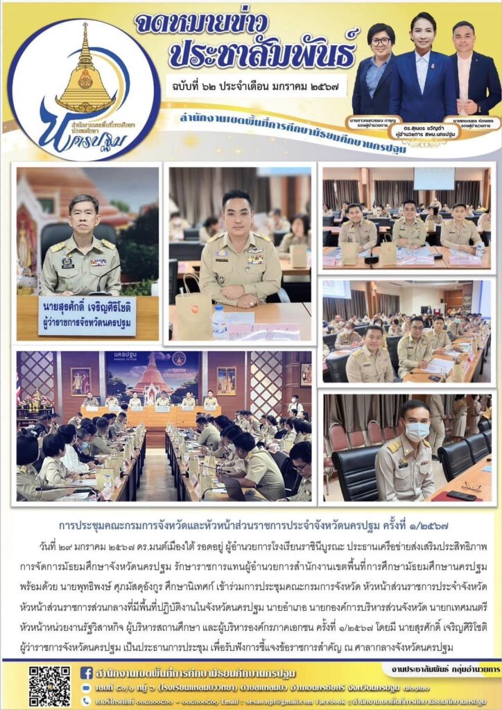 การประชุมคณะกรมการจังหวัดและหัวหน้าส่วนราชการประจำจังหวัดนครปฐม ครั้งที่ ๑/๒๕๖๗ 01/29/202401/29/2024 ประชา สัมพันธ์ จดหมายข่าวเขต Views: 271 ประชา สัมพันธ์