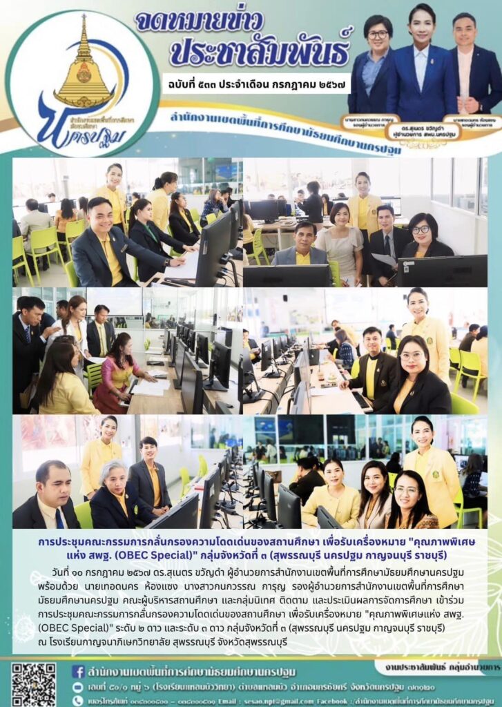 การประชุมคณะกรรมการกลั่นกรองความโดดเด่นของสถานศึกษา เพื่อรับเครื่องหมาย “คุณภาพพิเศษแห่ง สพฐ. (OBEC Special)” ระดับ ๒ ดาว และระดับ ๓ ดาว กลุ่มจังหวัดที่ ๓ (สุพรรณบุรี นครปฐม กาญจนบุรี ราชบุรี) 07/10/202407/15/2024 ประชา สัมพันธ์ จดหมายข่าวเขต Views: 291 ประชา สัมพันธ์