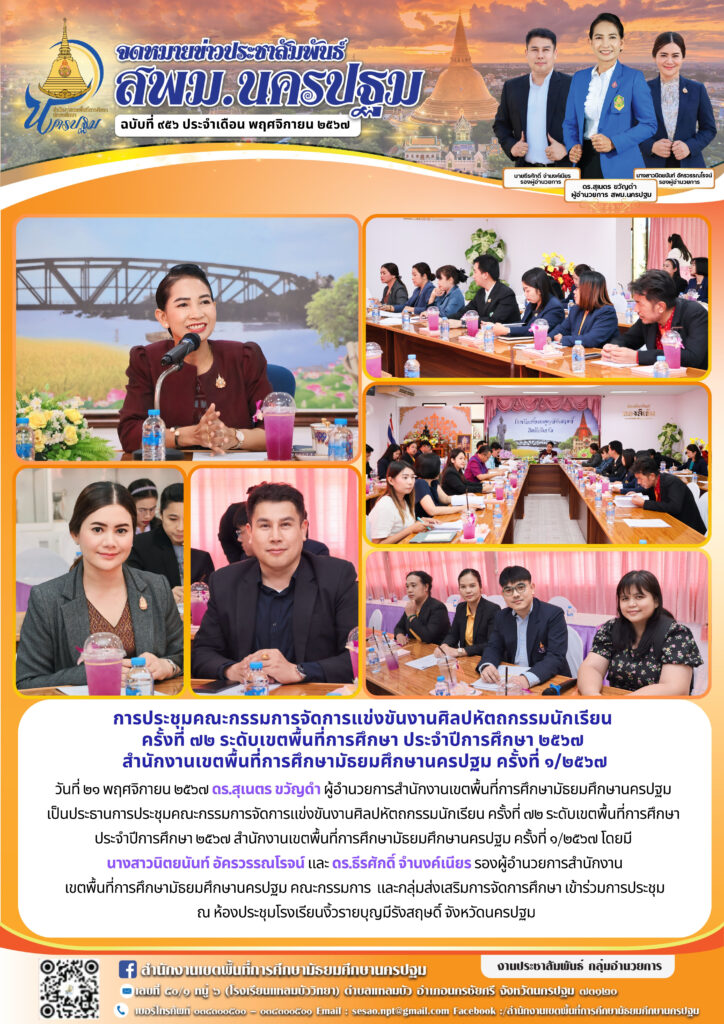 การประชุมคณะกรรมการจัดการแข่งขันงานศิลปหัตถกรรมนักเรียน ครั้งที่ ๗๒ ระดับเขตพื้นที่การศึกษา ประจำปีการศึกษา ๒๕๖๗ สำนักงานเขตพื้นที่การศึกษามัธยมศึกษานครปฐม ครั้งที่ ๑/๒๕๖๗ 11/21/202411/22/2024 ประชา สัมพันธ์ จดหมายข่าวเขต Views: 331 ประชา สัมพันธ์
