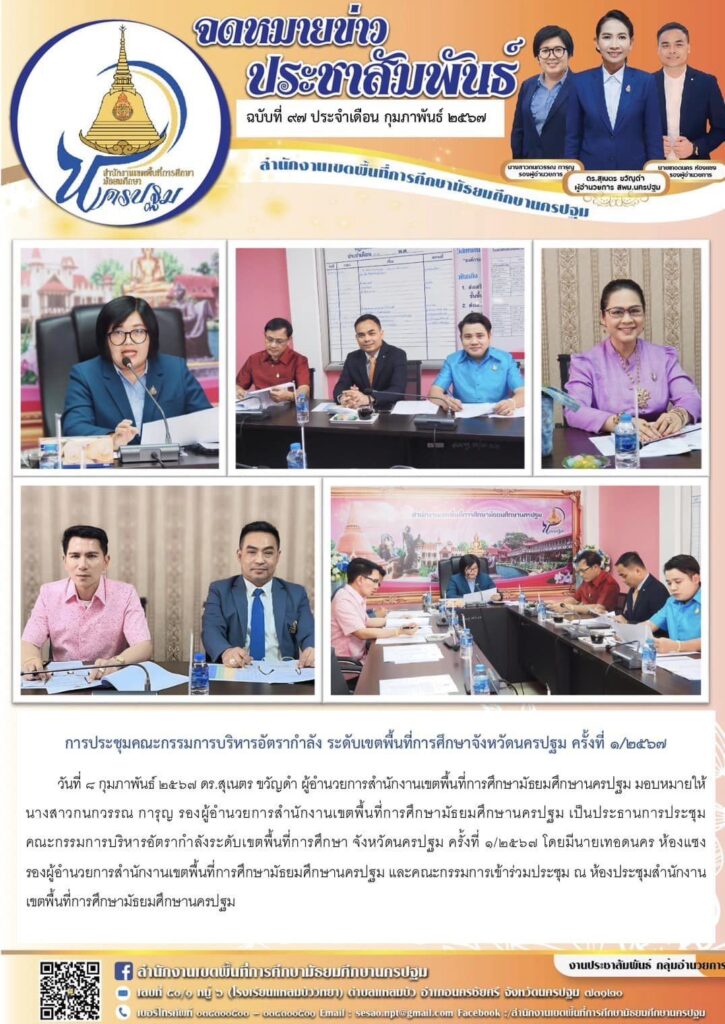การประชุมคณะกรรมการบริหารอัตรากำลังระดับเขตพื้นที่การศึกษาจังหวัดนครปฐม ครั้งที่ ๑/๒๕๖๗ 02/08/202402/08/2024 ประชา สัมพันธ์ จดหมายข่าวเขต Views: 238 ประชา สัมพันธ์