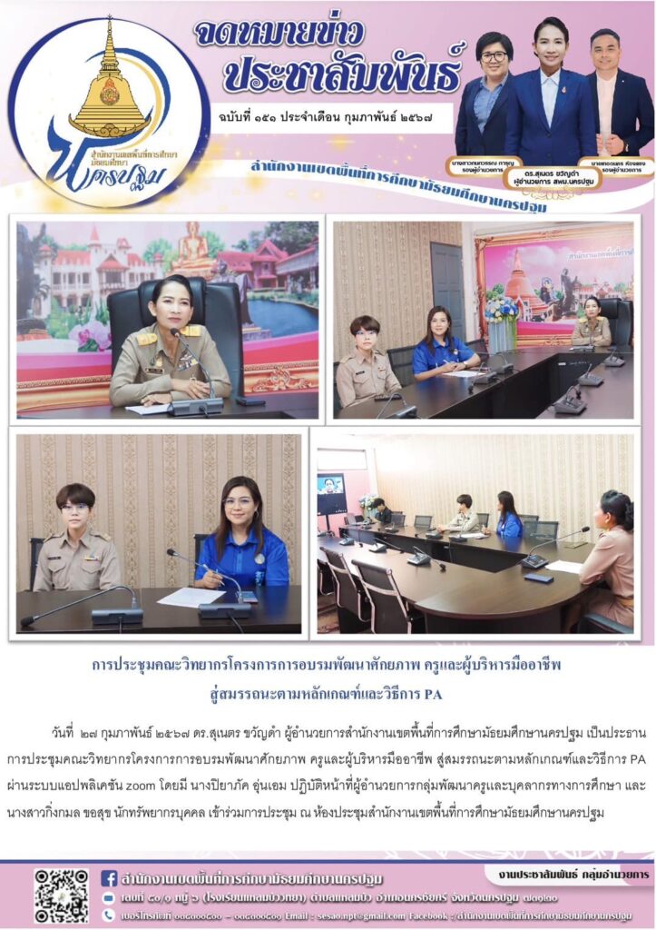 การประชุมคณะวิทยากรโครงการการอบรมพัฒนาศักยภาพ ครูและผู้บริหารมืออาชีพ สู่สมรรถนะตามหลักเกณฑ์และวิธีการ PA 02/27/202402/27/2024 ประชา สัมพันธ์ จดหมายข่าวเขต Views: 286 ประชา สัมพันธ์