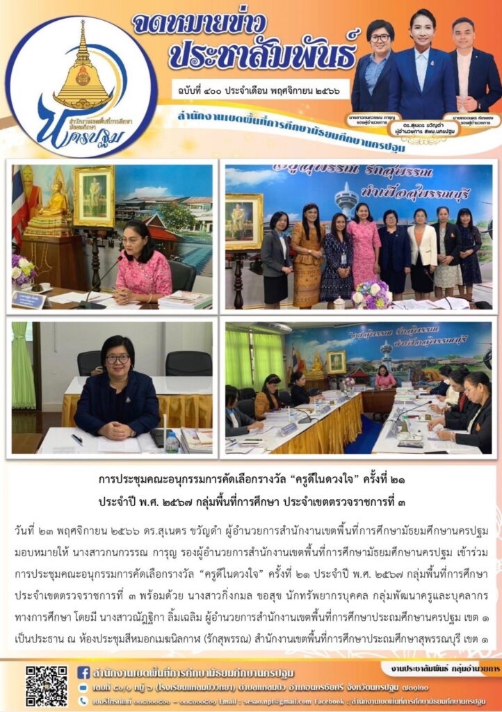 การประชุมคณะอนุกรรมการคัดเลือกรางวัล “ครูดีในดวงใจ” ครั้งที่ ๒๑ ประจำปี พ.ศ. ๒๕๖๗ กลุ่มพื้นที่การศึกษา ประจำเขตตรวจราชการที่ ๓ 11/23/202312/13/2023 ประชา สัมพันธ์ จดหมายข่าวเขต Views: 141 ประชา สัมพันธ์