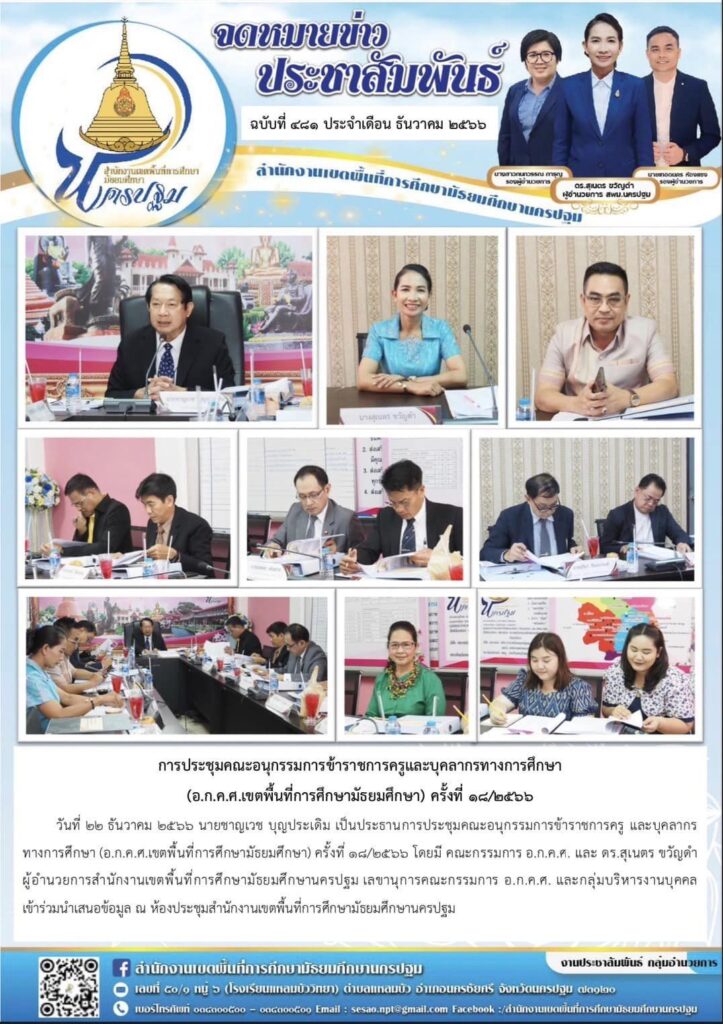 การประชุมคณะอนุกรรมการข้าราชการครูและบุคลากรทางการศึกษา (อ.ก.ค.ศ.เขตพื้นที่การศึกษามัธยมศึกษา) ครั้งที่ ๑๘/๒๕๖๖ 12/22/202301/03/2024 ประชา สัมพันธ์ จดหมายข่าวเขต Views: 613 ประชา สัมพันธ์