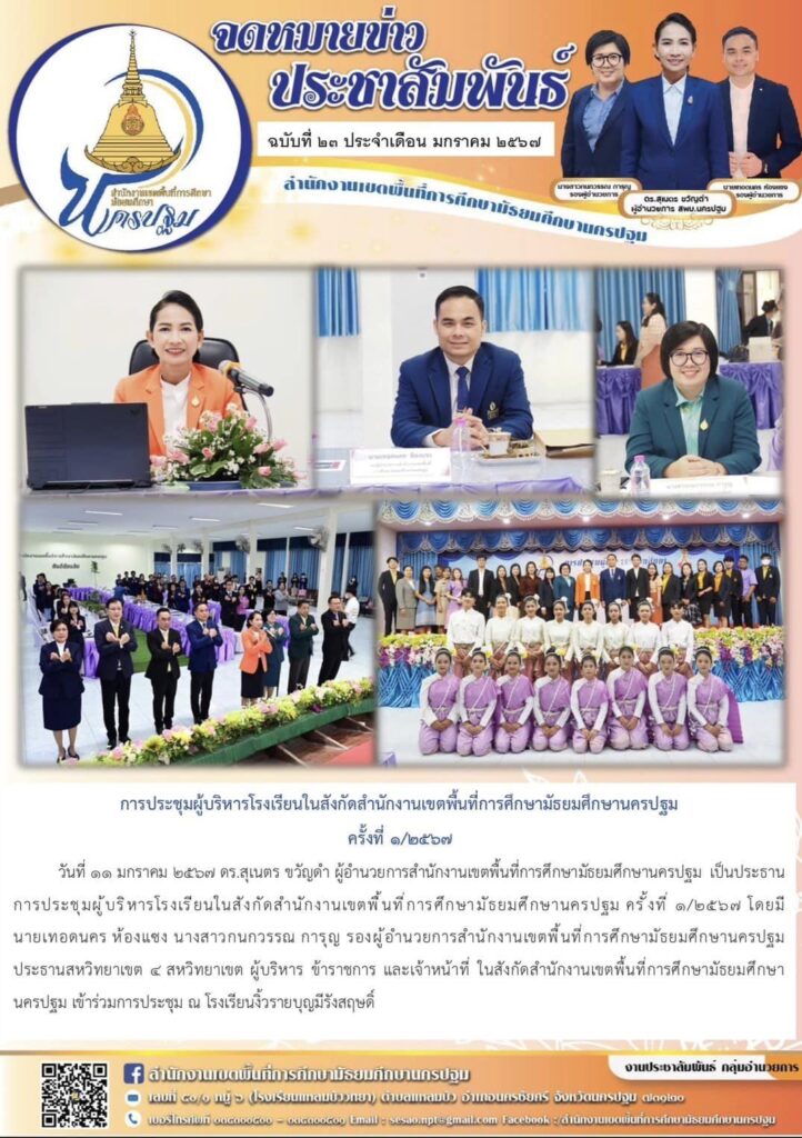 การประชุมผู้บริหารโรงเรียนในสังกัดสำนักงานเขตพื้นที่การศึกษามัธยมศึกษานครปฐม ครั้งที่ ๑/๒๕๖๗ 01/11/202401/23/2024 ประชา สัมพันธ์ จดหมายข่าวเขต Views: 193 ประชา สัมพันธ์