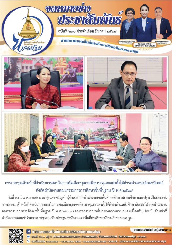 การประชุมเจ้าหน้าที่ดำเนินการสอบในการคัดเลือกบุคคลเพื่อบรรจุและแต่งตั้งให้ดำรงตำแหน่งศึกษานิเทศก์ สังกัดสำนักงานคณะกรรมการการศึกษาขั้นพื้นฐาน ปี พ.ศ.๒๕๖๗ (คณะกรรมการกลั่นกรองความเหมาะสมเบื้องต้น) 03/21/202403/21/2024 ประชา สัมพันธ์ จดหมายข่าวเขต Views: 146 ประชา สัมพันธ์