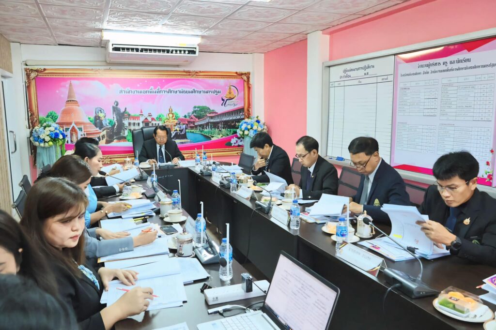 วันที่ ๑๔ มีนาคม ๒๕๖๘ นายชาญเวช บุญประเดิม เป็นประธานการประชุมคณะอนุกรรมการข้าราชการครู และบุคลากรทางการศึกษา (อ.ก.ค.ศ.เขตพื้นที่การศึกษามัธยมศึกษานครปฐม) ครั้งที่ ๓/๒๕๖๘ โดยมี คณะกรรมการ อ.ก.ค.ศ. ดร.สุเนตร ขวัญดำ ผู้อำนวยการสำนักงานเขตพื้นที่การศึกษามัธยมศึกษานครปฐม นางสาวนิตยนันท์ อัครวรรณโรจน์ รองผู้อำนวยการสำนักงานเขตพื้นที่การศึกษามัธยมศึกษานครปฐม และกลุ่มบริหารงานบุคคล เข้าร่วมการประชุม ณ ห้องประชุมสำนักงานเขตพื้นที่การศึกษามัธยมศึกษานครปฐม