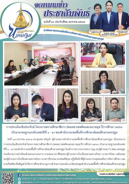 การประเมินเชิงประจักษ์ โครงการสถานศึกษาสีขาว ปลอดยาเสพติดและอบายมุข ปีการศึกษา ๒๕๖๖ (รักษามาตรฐานระดับเพชรปีที่ ๑ – ๒) ของสำนักงานเขตพื้นที่การศึกษามัธยมศึกษานครปฐม 01/17/202401/23/2024 ประชา สัมพันธ์ จดหมายข่าวเขต Views: 265 ประชา สัมพันธ์
