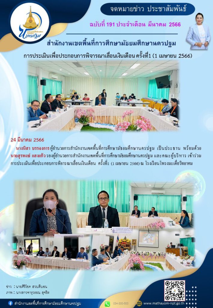 การประเมินเพื่อประกอบการพิจารณาเลื่อนเงินเดือน ครั้งที่ 1 (1 เมษายน 2566) 03/27/202303/27/2023 admin จดหมายข่าวเขต Views: 179 admin