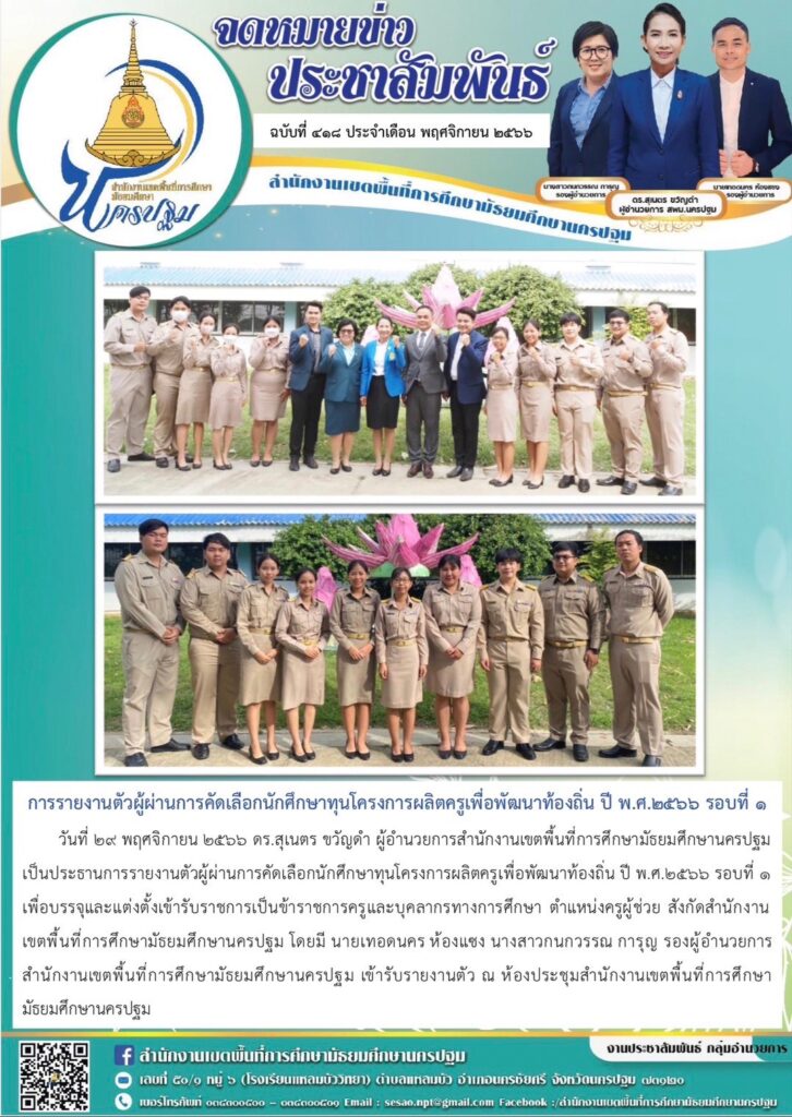 การรายงานตัวผู้ผ่านการคัดเลือกนักศึกษาทุนโครงการผลิตครูเพื่อพัฒนาท้องถิ่น ปี พ.ศ.๒๕๖๖ รอบที่ ๑ 11/29/202312/13/2023 ประชา สัมพันธ์ จดหมายข่าวเขต Views: 138 ประชา สัมพันธ์