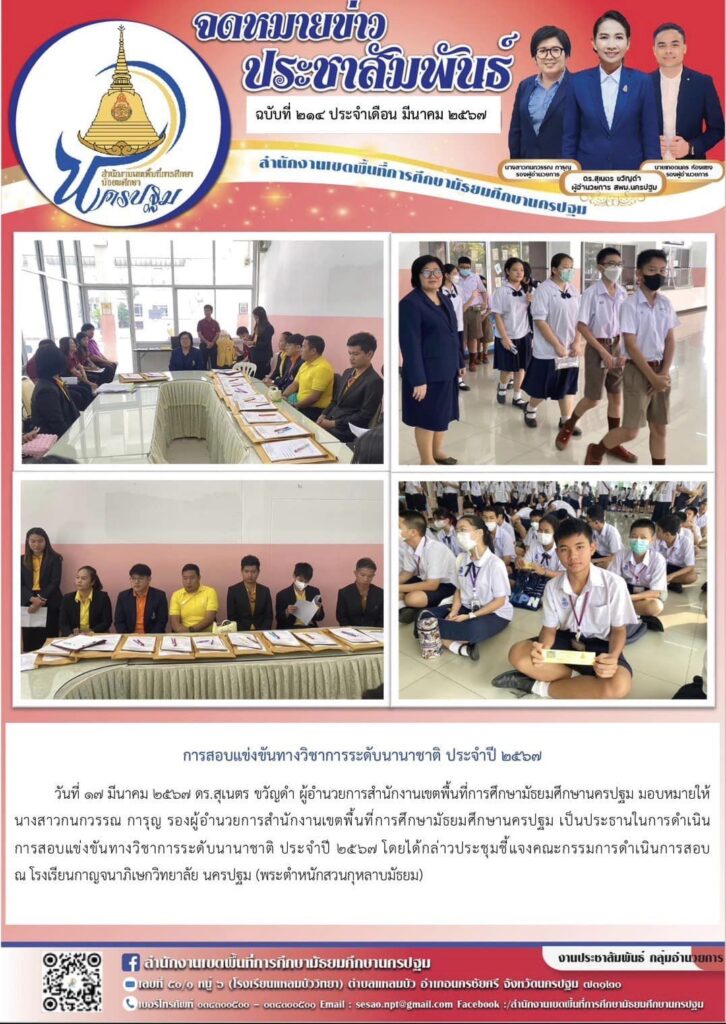 การสอบแข่งขันทางวิชาการระดับนานาชาติ ประจำปี ๒๕๖๗ 03/17/202403/18/2024 ประชา สัมพันธ์ จดหมายข่าวเขต Views: 421 ประชา สัมพันธ์