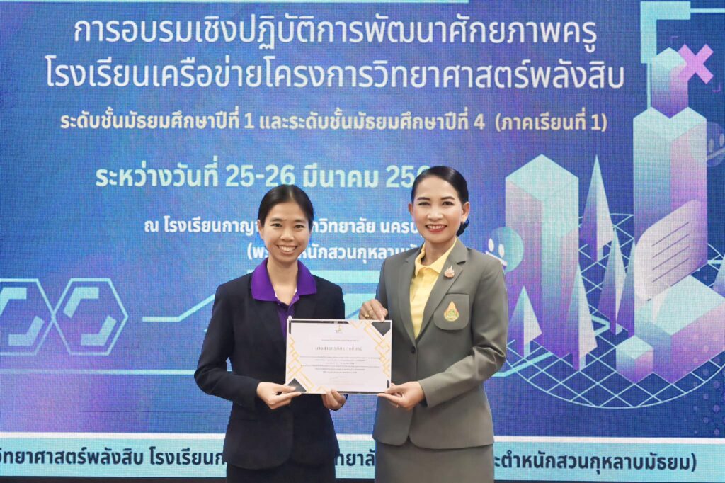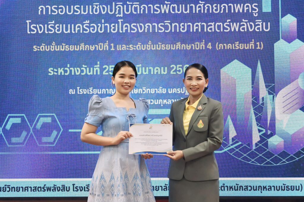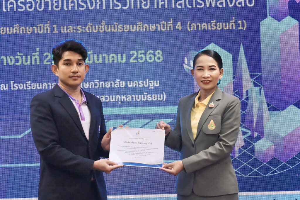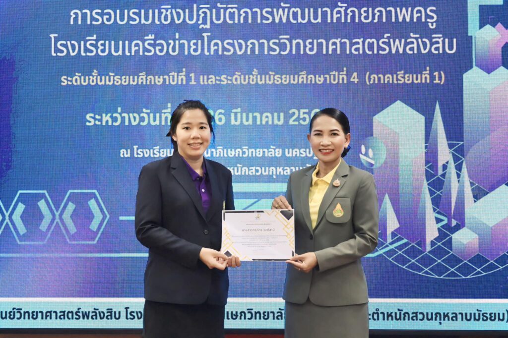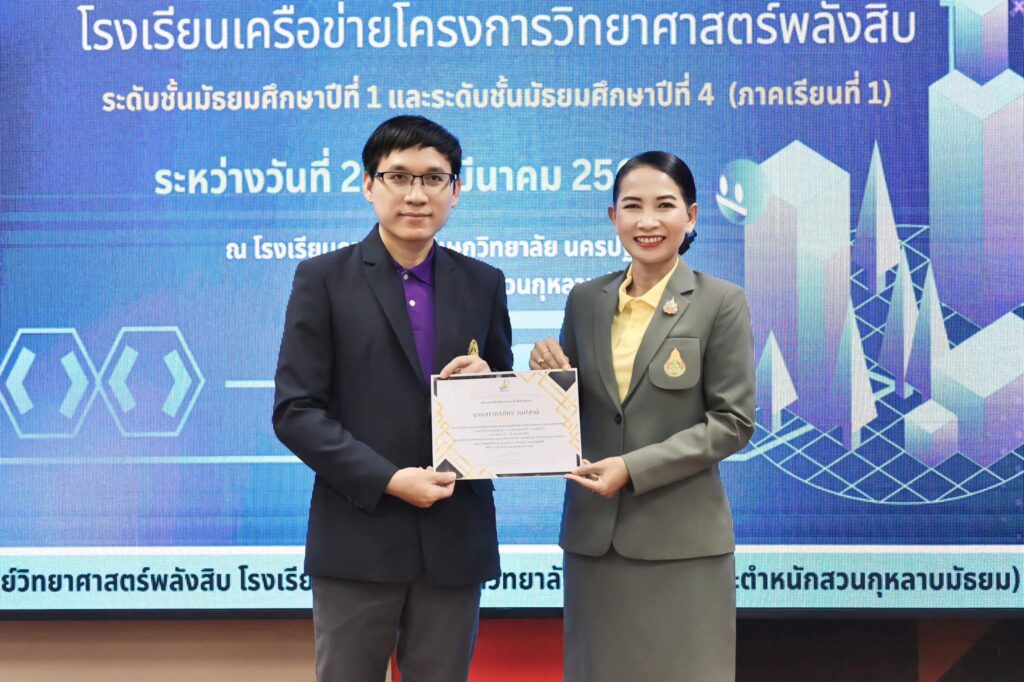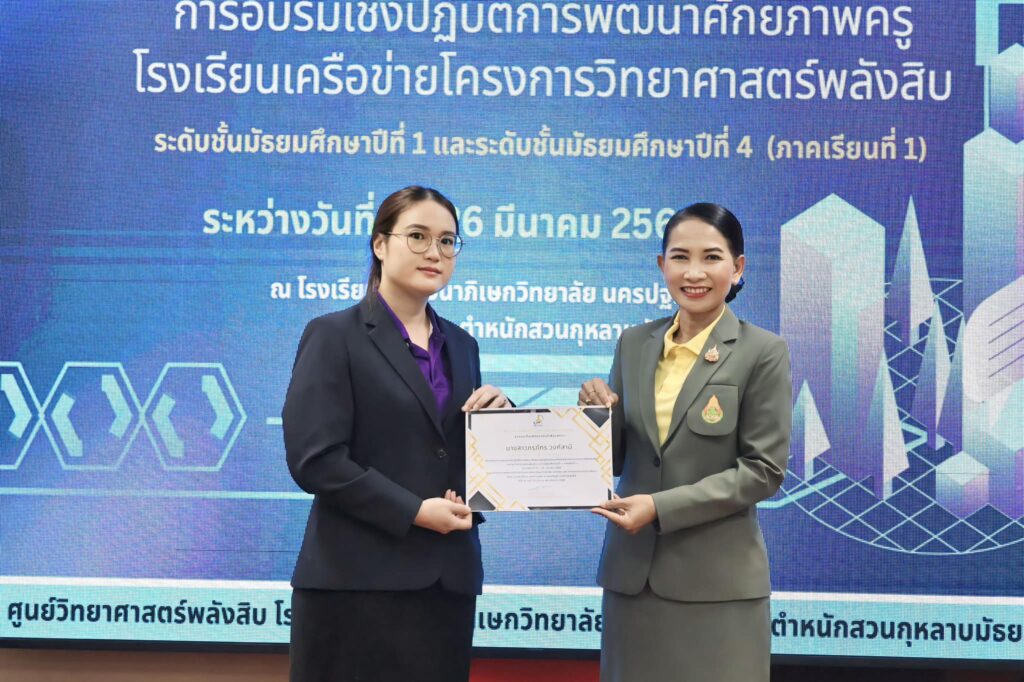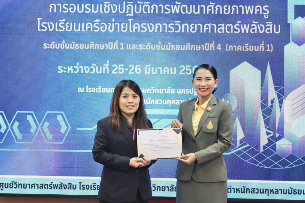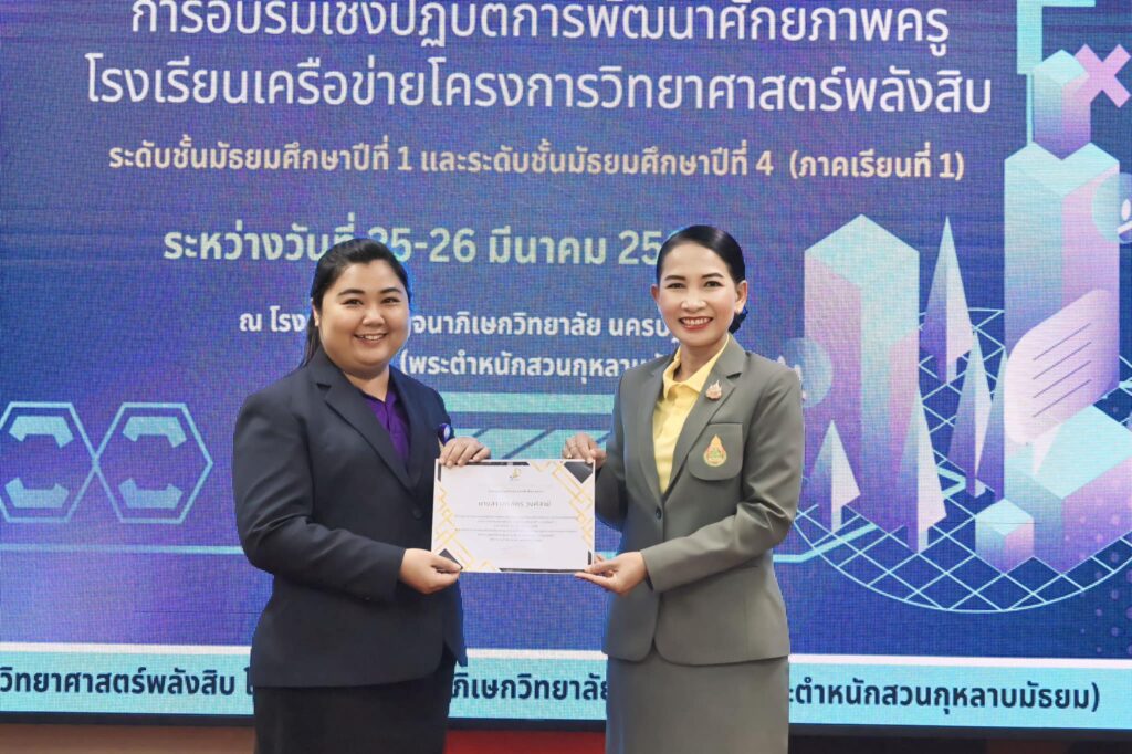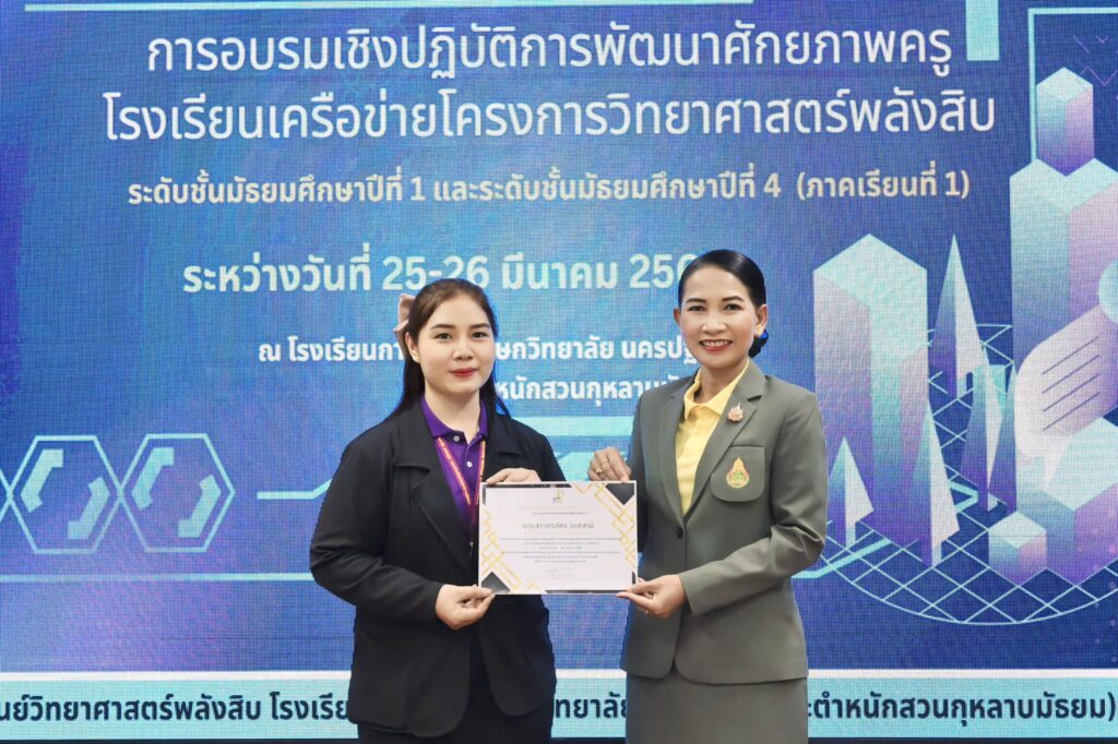 วันที่ ๒๕ มีนาคม ๒๕๖๘ ดร.สุเนตร ขวัญดำ ผู้อำนวยการสำนักงานเขตพื้นที่การศึกษามัธยมศึกษานครปฐม เป็นประธานเปิดการอบรมเชิงปฏิบัติการการพัฒนาบุคลากรและการจัดการเรียนรู้โรงเรียนเครือข่ายตามแนวทางโครงการวิทยาศาสตร์ พลังสิบ ระดับมัธยมศึกษาปีที่ ๑ และระดับมัธยมศึกษาปีที่ ๔ (ภาคเรียนที่ ๑) โดยมี โรงเรียนวัดไร่ขิงวิทยา และโรงเรียนสิรินธรราชวิทยาลัย นำบุคลากรครูเข้าอบรม จำนวน ๑๘ คน เนื่องจากเป็นโรงเรียนที่สมัครเข้าโครงการวิทยาศาสตร์พลังสิบและเพื่อเตรียมความพร้อมในการเปิดห้องเรียนวิทยาศาสตร์พลังสิบในปีการศึกษา ๒๕๖๘ ณ โรงเรียนกาญจนาภิเษกวิทยาลัย นครปฐม (พระตำหนักสวนกุหลาบมัธยม) ทั้งนี้ ได้รับความอนุเคราะห์จาก ว่าที่ร้อยตรีพิษณุพล แตงอ่อน ผู้อำนวยการโรงเรียนกาญจนาภิเษกวิทยาลัย นครปฐม (พระตำหนักสวนกุหลาบมัธยม) พร้อมคณะบุคลากรครูในโครงการวิทยาศาสตร์พลังสิบเป็นวิทยากรในการฝึกอบรม และอนุเคราะห์สถานที่สำหรับการจัดอบรม