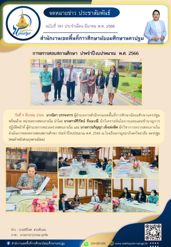 การออกตรวจสอบสถานศึกษา ประจำปีงบประมาณ 2566 ณ โรงเรียนกาญจนาภิเษกวิทยาลัย นครปฐม 03/09/202303/13/2023 admin จดหมายข่าวเขต Views: 179 admin