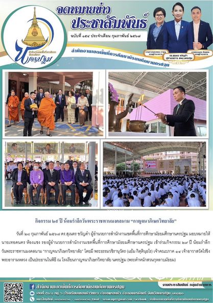 กิจกรรม ๒๙ ปี น้อมรำลึกวันพระราชทานมงคลนาม “กาญจนาภิเษกวิทยาลัย” 02/28/202402/28/2024 ประชา สัมพันธ์ จดหมายข่าวเขต Views: 242 ประชา สัมพันธ์
