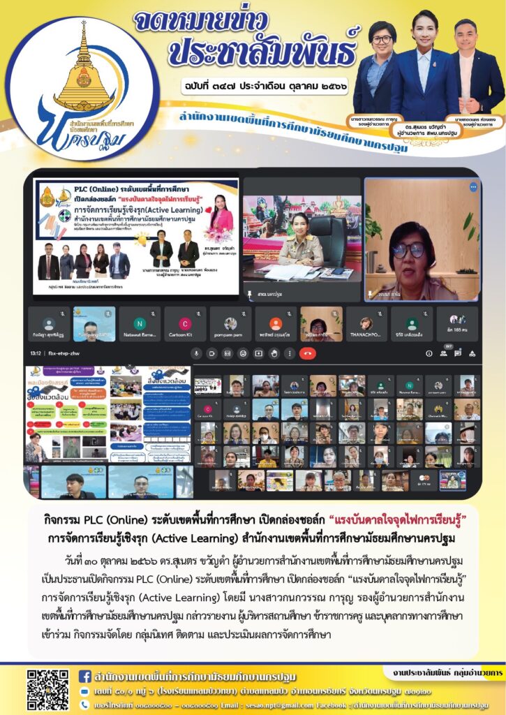 กิจกรรม PLC (Online) ระดับเขตพื้นที่การศึกษา เปิดกล่องชอล์ก “แรงบันดาลใจจุดไฟการเรียนรู้” การจัดการเรียนรู้เชิงรุก (Active Learning) สำนักงานเขตพื้นที่การศึกษามัธยมศึกษานครปฐม 10/30/202311/30/2023 ประชา สัมพันธ์ จดหมายข่าวเขต Views: 147 ประชา สัมพันธ์
