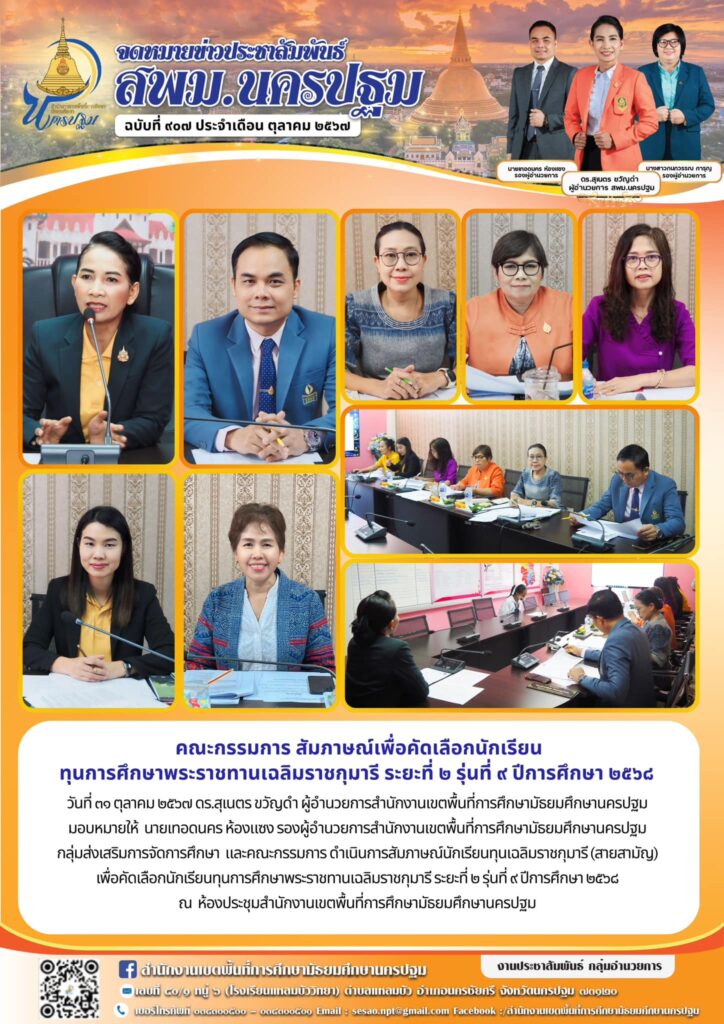 คณะกรรมการ สัมภาษณ์เพื่อคัดเลือกนักเรียนทุนการศึกษาพระราชทานเฉลิมราชกุมารี ระยะที่ ๒ รุ่นที่ ๙ ปีการศึกษา ๒๕๖๘ (สายสามัญ) 10/31/202411/01/2024 ประชา สัมพันธ์ จดหมายข่าวเขต Views: 215 ประชา สัมพันธ์