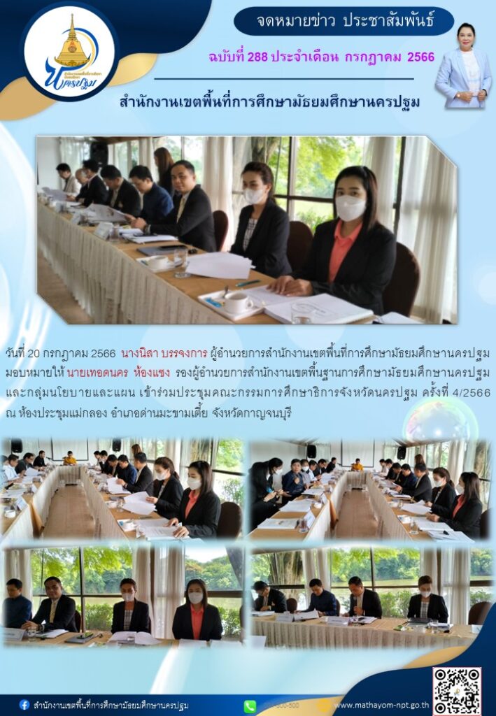 ประชุมคณะกรรมการศึกษาธิการจังหวัดนครปฐม ครั้งที่ 4/2566 07/20/202307/20/2023 admin จดหมายข่าวเขต Views: 171 admin