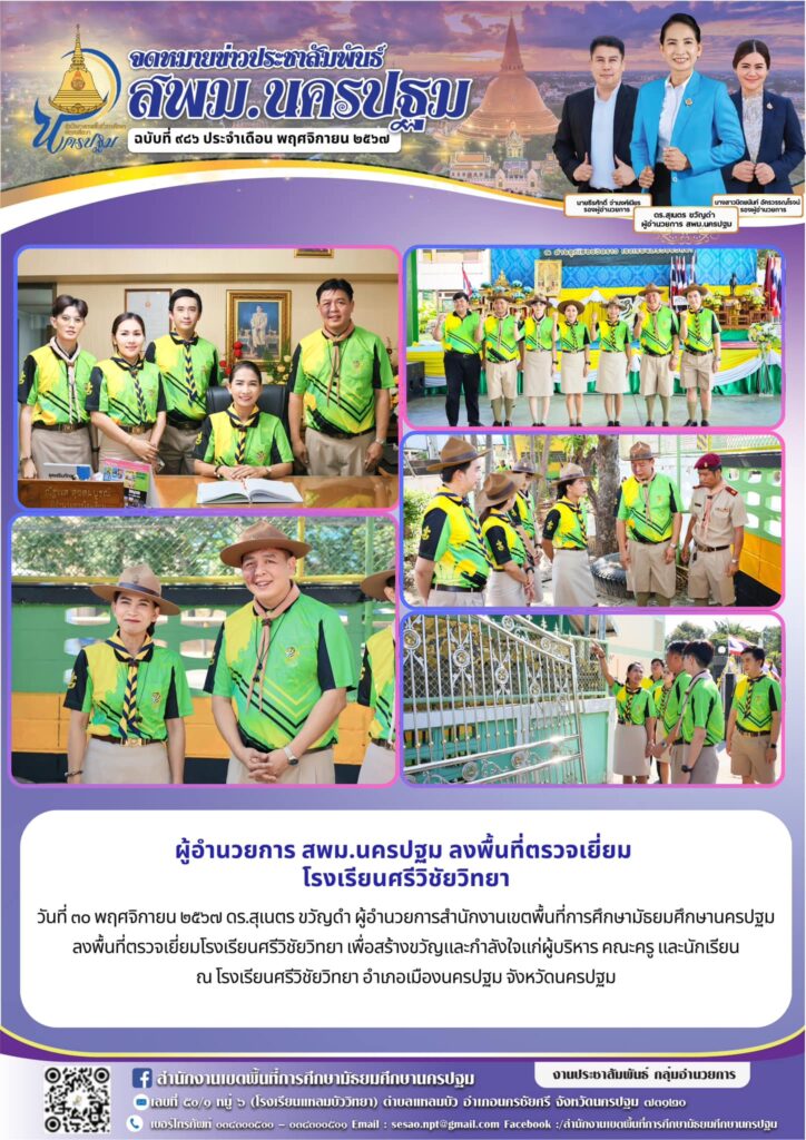 ผู้อำนวยการ สพม.นครปฐม ลงพื้นที่ตรวจเยี่ยม โรงเรียนศรีวิชัยวิทยา 11/30/202412/03/2024 ประชา สัมพันธ์ จดหมายข่าวเขต Views: 284 ประชา สัมพันธ์