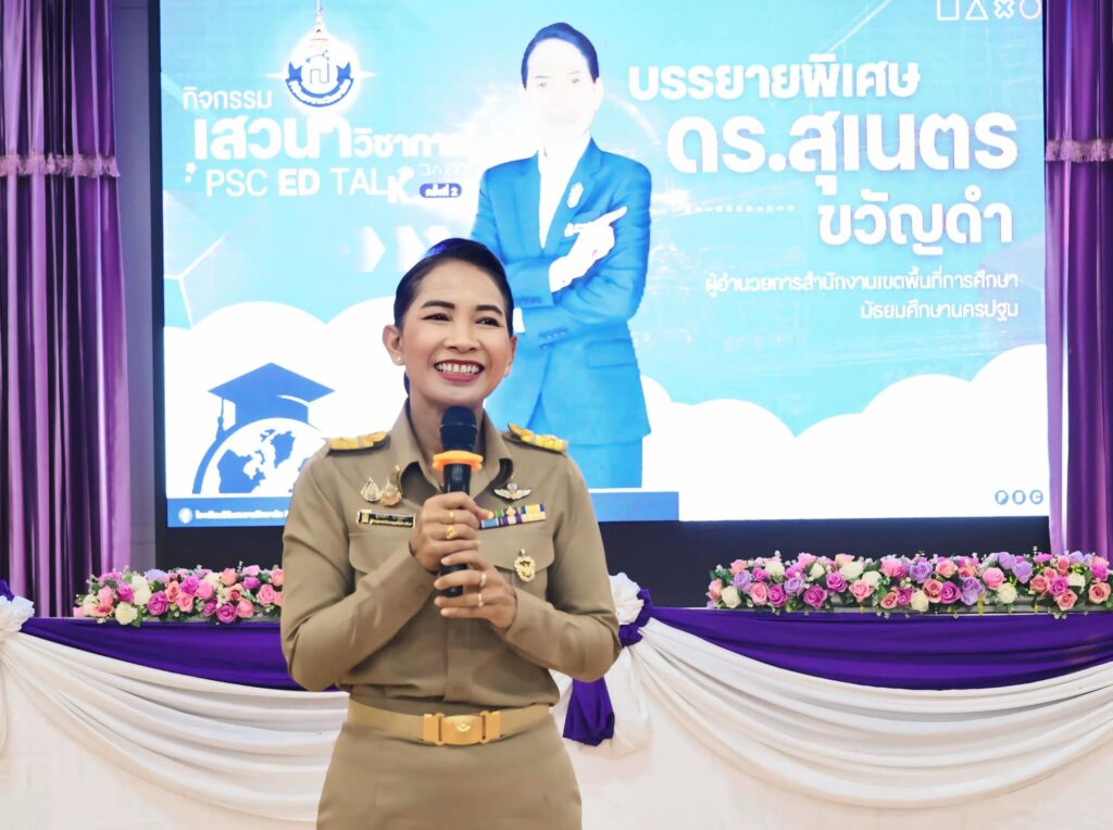 วันที่ ๒๔ มีนาคม ๒๕๖๘ ดร.สุเนตร ขวัญดำ ผู้อำนวยการสำนักงานเขตพื้นที่การศึกษามัธยมศึกษานครปฐม เป็นประธานการเสวนาวิชาการ ครั้งที่ ๒ “PSC ED Talk” พร้อมกล่าวบรรยายพิเศษ เพื่อแลกเปลี่ยน เรียนรู้ เทคนิควิธีการสอนแบบ Active Learning ของครูแต่ละรายวิชา และติดตาม สะท้อนกลับของการนิเทศภายในโรงเรียนของครู ในรูปแบบการเสวนาวิชาการ ณ ห้องประชุมแก้วเจ้าจอม โรงเรียนสิรินธรราชวิทยาลัย จังหวัดนครปฐม