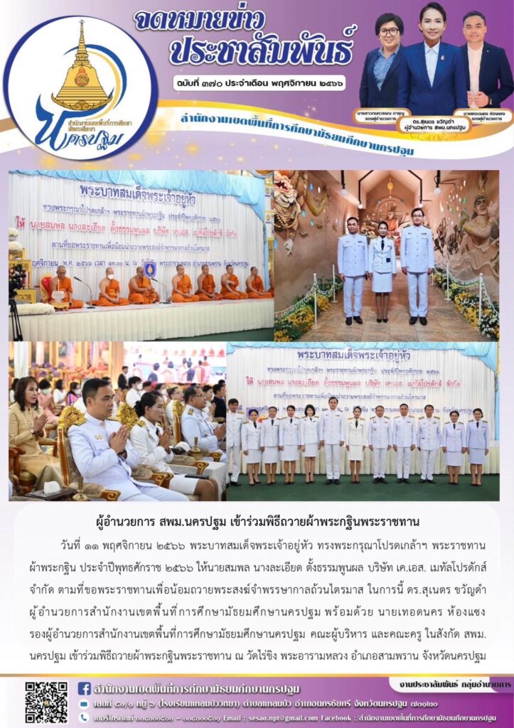 ผู้อำนวยการ สพม.นครปฐม เข้าร่วมพิธีถวายผ้าพระกฐินพระราชทาน 11/11/202312/01/2023 ประชา สัมพันธ์ จดหมายข่าวเขต Views: 176 ประชา สัมพันธ์