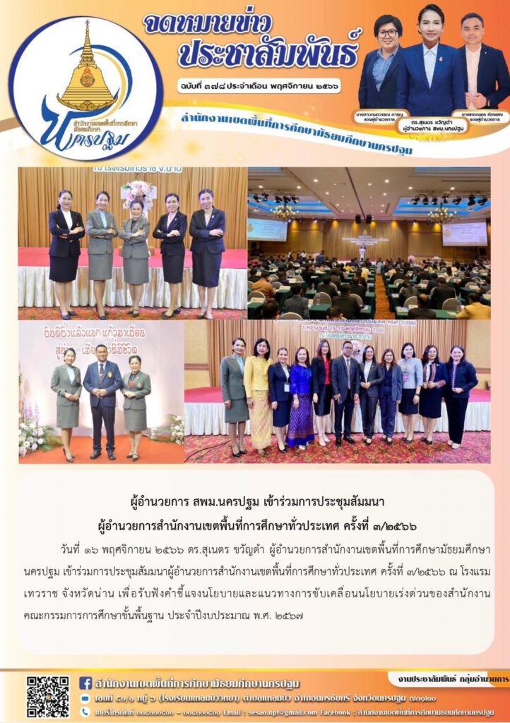 ผู้อำนวยการ สพม.นครปฐม เข้าร่วมการประชุมสัมมนา ผู้อำนวยการสำนักงานเขตพื้นที่การศึกษาทั่วประเทศ ครั้งที่ ๓/๒๕๖๖ 11/16/202312/01/2023 ประชา สัมพันธ์ จดหมายข่าวเขต Views: 218 ประชา สัมพันธ์