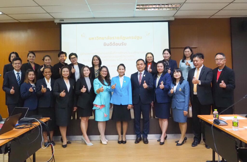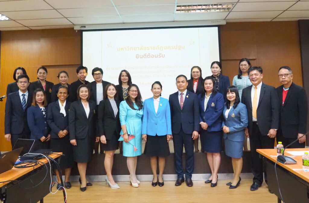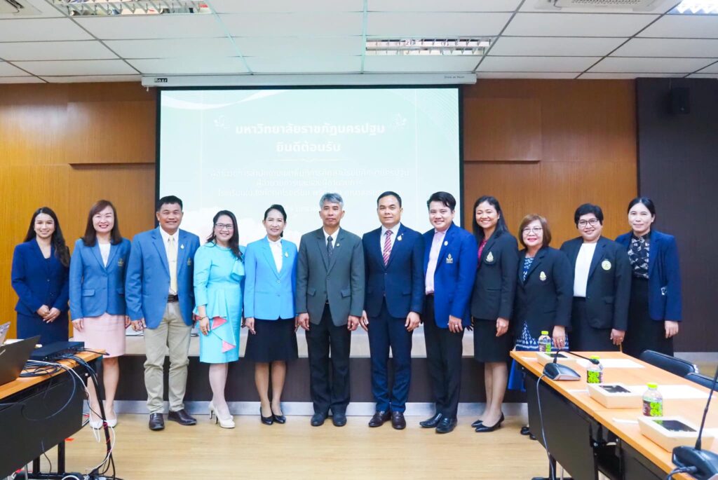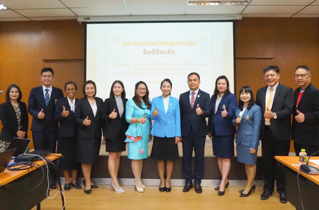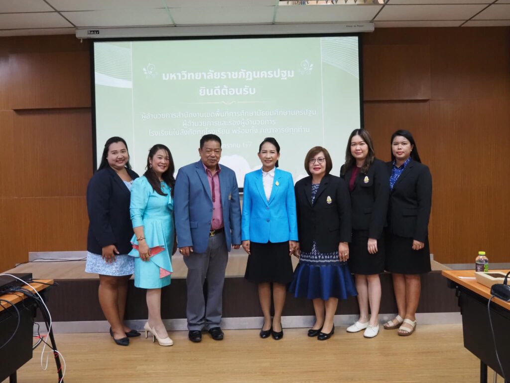 วันที่ ๑๔ มกราคม ๒๕๖๗ ดร.สุเนตร ขวัญดำ ผู้อำนวยการสำนักงานเขตพื้นที่การศึกษามัธยมศึกษานครปฐม และ ดร.วิรัตน์ ปิ่นแก้ว อธิการบดีมหาวิทยาลัยราชภัฏนครปฐม เป็นประธานการประชุมพิธีลงนามการทำบันทึกข้อตกลงความร่วมมือทางวิชาการ ระหว่างโรงเรียนในสังกัดสำนักงานเขตพื้นที่การศึกษามัธยมศึกษานครปฐม ร่วมกับมหาวิทยาลัยราชภัฏนครปฐม เพื่อให้บรรลุเป้าประสงค์ในการขับเคลื่อนนโยบายและจุดเน้นของสำนักงานคณะกรรมการการศึกษาขั้นพื้นฐาน โดยมี นายเทอดนคร ห้องแซง รองผู้อำนวยการสำนักงานเขตพื้นที่การศึกษามัธยมศึกษานครปฐม คณะผู้บริหารสถานศึกษาในสังกัดสำนักงานเขตพื้นที่การศึกษามัธยมศึกษานครปฐม เข้าร่วมประชุม ณ อาคารสิริวรปัญญา มหาวิทยาลัยราชภัฏนครปฐม