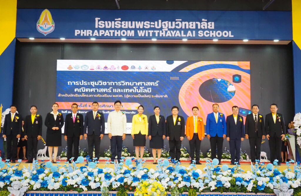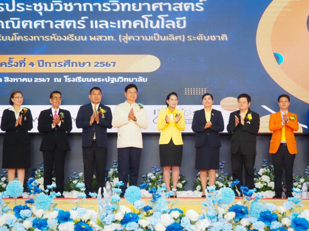 วันที่ ๒๖ สิงหาคม ๒๕๖๗ ดร.สุเนตร ขวัญดำ ผู้อำนวยการสำนักงานเขตพื้นที่การศึกษามัธยมศึกษานครปฐม เป็นประธานในพิธีเปิดการประชุมวิชาการวิทยาศาสตร์ คณิตศาสตร์ และเทคโนโลยี สำหรับนักเรียนโครงการห้องเรียน พสวท.(สู่ความเป็นเลิศ) ระดับชาติ ครั้งที่ ๔ ประจำปีการศึกษา ๒๕๖๗ จัดขึ้นระหว่างวันที่ ๒๖ – ๒๘ สิงหาคม ๒๕๖๗ เพื่อเป็นประโยชน์ต่อนักเรียน สนับสนุนส่งเสริมศักยภาพของครูผู้สอนให้จัดกิจกรรมการเรียนรู้ที่สอดรับกับการจัดการเรียนการสอนในยุคปัจจุบันที่ต้องมุ่งเน้นให้นักเรียนมีความรู้ ความเข้าใจอย่างลึกซึ้ง และถ่องแท้ ในสาชาวิชาความรู้ทางด้านวิทยาศาสตร์ คณิตศาสตร์ และคอมพิวเตอร์ โดยมี คณะผู้บริหาร ผู้บริหารศูนย์โรงเรียน พสวท.ในภูมิภาคต่างๆ ทั่วประเทศ จำนวน ๑๐ ศูนย์โรงเรียน ศึกษานิเทศก์ คณะครู และบุคลากรทางการศึกษา เข้าร่วมในพิธีเปิดการประชุม ณ โรงเรียนพระปฐมวิทยาลัย