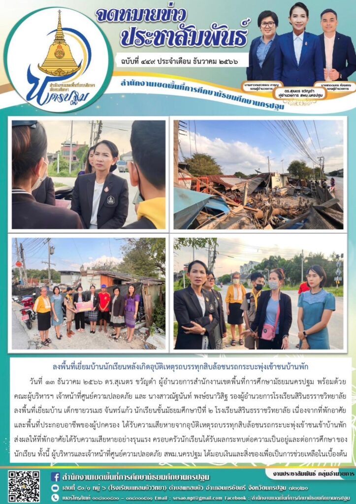 ลงพื้นที่เยี่ยมบ้านนักเรียนหลังเกิดอุบัติเหตุรถบรรทุกสิบล้อชนรถกระบะพุ่งเข้าชนบ้านพัก 12/13/202312/14/2023 ประชา สัมพันธ์ จดหมายข่าวเขต Views: 295 ประชา สัมพันธ์