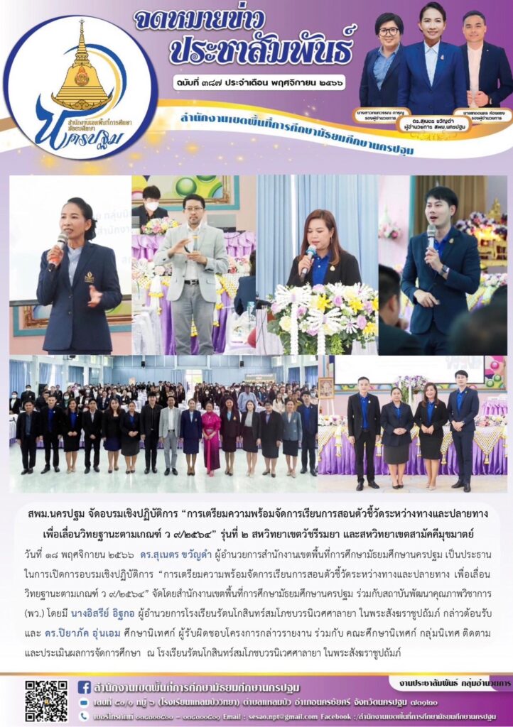 สพม.นครปฐม จัดอบรมเชิงปฏิบัติการ “การเตรียมความพร้อมจัดการเรียนการสอนตัวชี้วัดระหว่างทางและปลายทาง เพื่อเลื่อนวิทยฐานะตามเกณฑ์ ว ๙/๒๕๖๔” รุ่นที่ ๒ สหวิทยาเขตวัชรีรมยา และสหวิทยาเขตสามัคคีมุขมาตย์ 11/18/202312/13/2023 ประชา สัมพันธ์ จดหมายข่าวเขต Views: 128 ประชา สัมพันธ์