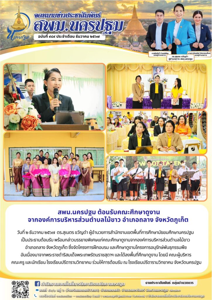 สพม.นครปฐม ต้อนรับคณะศึกษาดูงานจากองค์การบริหารส่วนตำบลไม้ขาว อำเภอถลาง จังหวัดภูเก็ต 12/02/202412/03/2024 ประชา สัมพันธ์ จดหมายข่าวเขต Views: 179 ประชา สัมพันธ์