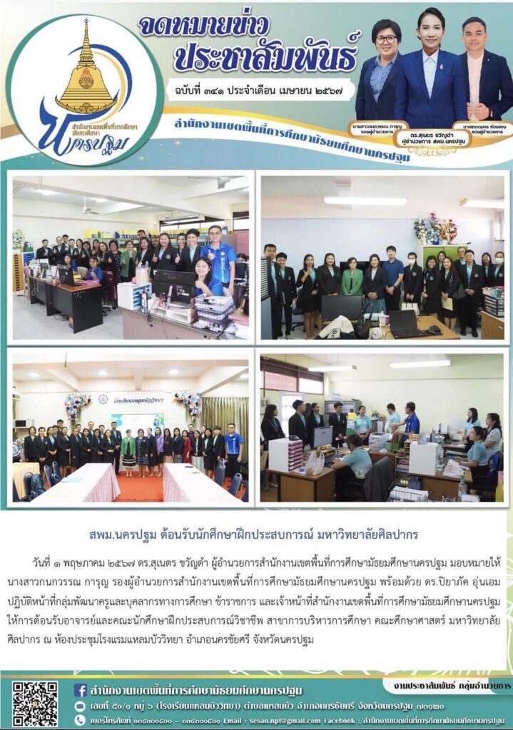 สพม.นครปฐม ต้อนรับนักศึกษาฝึกประสบการณ์ มหาวิทยาลัยศิลปากร 05/01/202405/01/2024 ประชา สัมพันธ์ จดหมายข่าวเขต Views: 218 ประชา สัมพันธ์