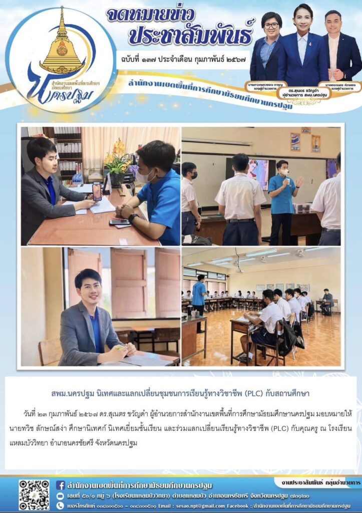 สพม.นครปฐม นิเทศและแลกเปลี่ยนชุมชนการเรียนรู้ทางวิชาชีพ (PLC) กับสถานศึกษา 02/23/202402/23/2024 ประชา สัมพันธ์ จดหมายข่าวเขต Views: 205 ประชา สัมพันธ์