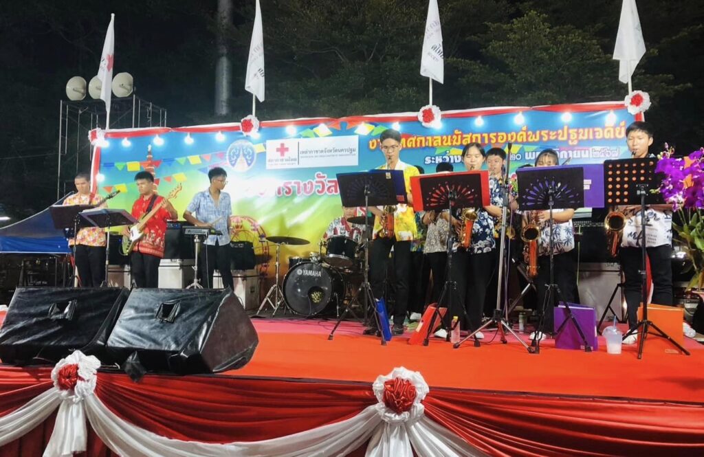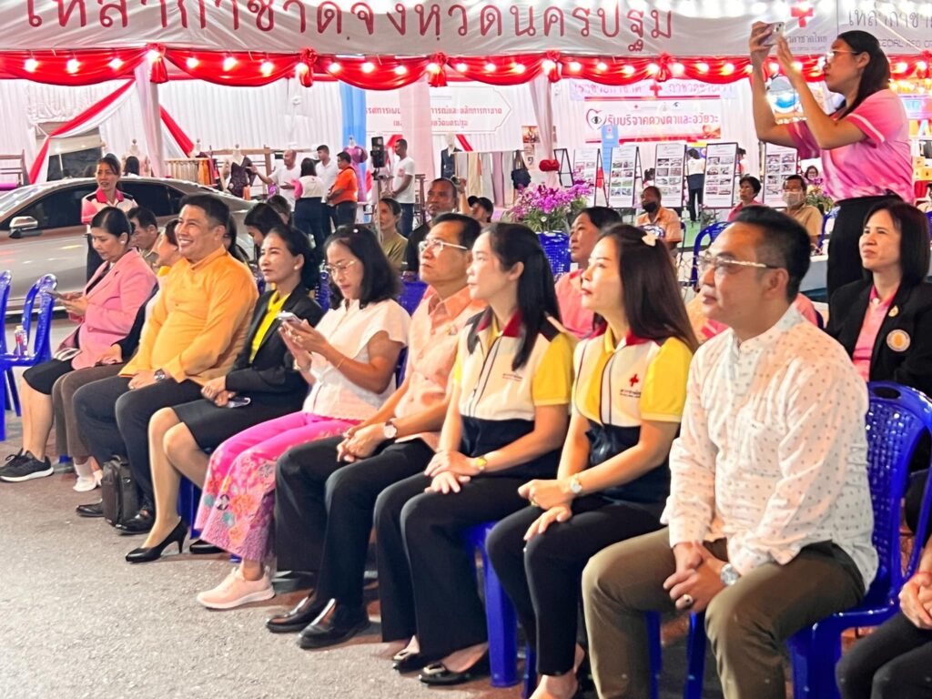 วันที่ ๑๙ พฤศจิกายน ๒๕๖๗ ดร.สุเนตร ขวัญดำ ผู้อำนวยการสำนักงานเขตพื้นที่การศึกษามัธยมศึกษานครปฐม พร้อมด้วย ดร.ธีรศักดิ์ จำนงค์เนียร และนางสาวนิตยนันท์ อัครวรรณโรจน์ รองผู้อำนวยการสำนักงานเขตพื้นที่การศึกษามัธยมศึกษานครปฐม และกลุ่มส่งเสริมการจัดการศึกษา เข้าร่วมกิจกรรมร้านกาชาด พร้อมเยี่ยมชมและให้กำลังใจการแสดงวงดนตรีลูกทุ่งโรงเรียนพระปฐมวิทยาลัย ในงานเทศกาลนมัสการองค์พระปฐมเจดีย์ ประจำปี ๒๕๖๗ จัดขึ้นระหว่างวันที่ ๑๒-๒๐ พฤศจิกายน ๒๕๖๗ ณ บริเวณบ่อน้ำพุ หน้าองค์พระร่วงโรจนฤทธิ์ อำเภอเมืองนครปฐม จังหวัดนครปฐม