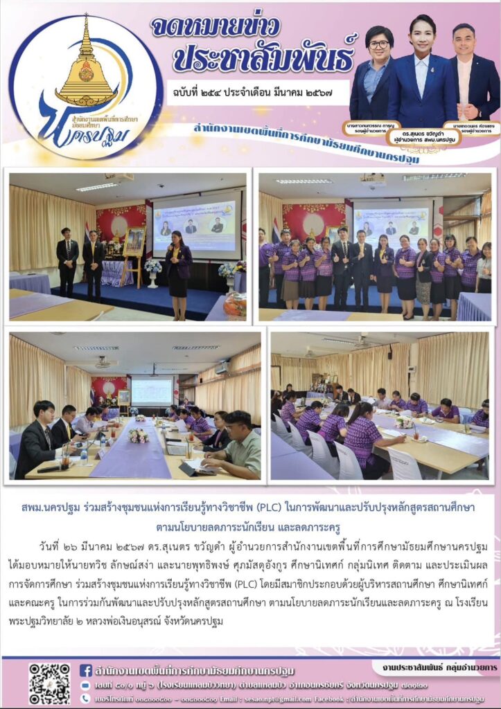 สพม.นครปฐม ร่วมสร้างชุมชนแห่งการเรียนรู้ทางวิชาชีพ (PLC) ในการพัฒนาและปรับปรุงหลักสูตรสถานศึกษา ตามนโยบายลดภาระนักเรียน และลดภาระครู 03/26/202403/27/2024 ประชา สัมพันธ์ จดหมายข่าวเขต Views: 164 ประชา สัมพันธ์