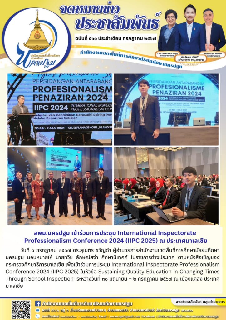 สพม.นครปฐม เข้าร่วมการประชุม International Inspectorate Professionalism Conference 2024 (IIPC 2025) ณ ประเทศมาเลเซีย 07/01/202407/03/2024 ประชา สัมพันธ์ จดหมายข่าวเขต Views: 276 ประชา สัมพันธ์