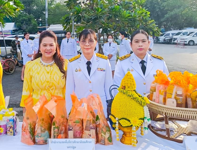 วันที่ ๕ ธันวาคม ๒๕๖๗ ดร.สุเนตร ขวัญดำ ผู้อำนวยการสำนักงานเขตพื้นที่การศึกษามัธยมศึกษานครปฐม มอบหมายให้ นางสาวนิตยนันท์ อัครวรรณโรจน์ รองผู้อำนวยการสำนักงานเขตพื้นที่การศึกษามัธยมศึกษานครปฐม พร้อมด้วย กลุ่มนิเทศ ติดตาม และประเมินผลการจัดการศึกษา เข้าร่วมกิจกรรมเนื่องในวันคล้ายวันพระบรมราชสมภพ พระบาทสมเด็จพระบรมชนกาธิเบศร มหาภูมิพลอดุลยเดชมหาราช บรมนาถบพิตร วันชาติ และวันพ่อแห่งชาติ ประกอบด้วย พิธีเจริญพระพุทธมนต์และทำบุญตักบาตรถวายพระราชกุศล และพิธีวางพานพุ่มดอกไม้ถวายบังคมพระบาทสมเด็จพระบรมชนกาธิเบศร โดยมี นางสาวอโรชา นันทมนตรี รองผู้ว่าราชการจังหวัด รักษาราชการแทนผู้ว่าราชการจังหวัดนครปฐม เป็นประธานในพิธี ณ บริเวณองค์พระปฐมเจดีย์ จังหวัดนครปฐม