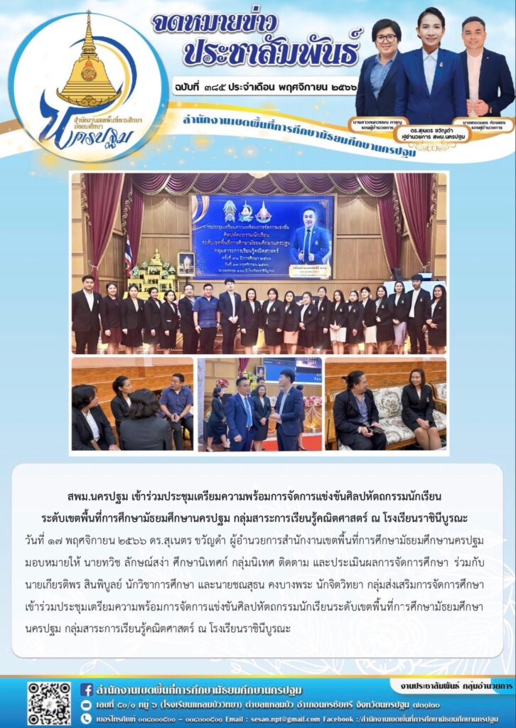 สพม.นครปฐม เข้าร่วมประชุมเตรียมความพร้อมการจัดการแข่งขันศิลปหัตถกรรมนักเรียน ระดับเขตพื้นที่การศึกษามัธยมศึกษานครปฐม กลุ่มสาระการเรียนรู้คณิตศาสตร์ ณ โรงเรียนราชินีบูรณะ 11/17/202312/13/2023 ประชา สัมพันธ์ จดหมายข่าวเขต Views: 203 ประชา สัมพันธ์