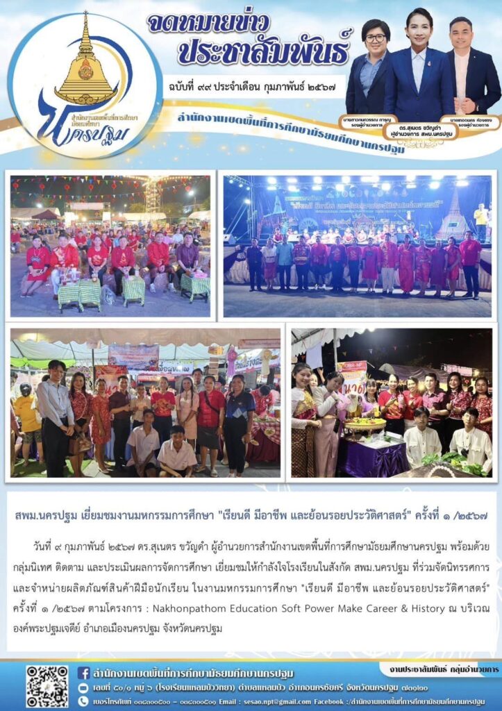 สพม.นครปฐม เยี่ยมชมงานมหกรรมการศึกษา “เรียนดี มีอาชีพ และย้อนรอยประวัติศาสตร์” ครั้งที่ ๑ /๒๕๖๗ 02/10/202402/12/2024 ประชา สัมพันธ์ จดหมายข่าวเขต Views: 224 ประชา สัมพันธ์