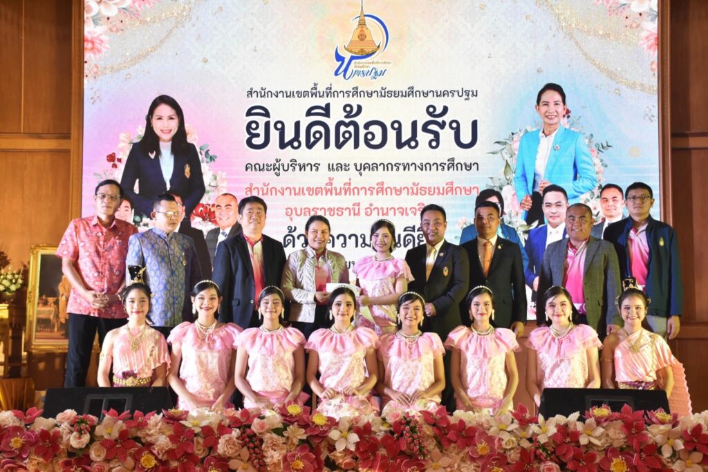 วันที่ ๒๓ พฤษภาคม ๒๕๖๗ ดร.สุเนตร ขวัญดำ ผู้อำนวยการสำนักงานเขตพื้นที่การศึกษามัธยมศึกษานครปฐม พร้อมด้วย นายเทอดนคร ห้องแซง นางสาวกนกวรรณ การุญ รองผู้อำนวยการสำนักงานเขตพื้นที่การศึกษามัธยมศึกษานครปฐม ประธานสหวิทยาเขต ๔ สหวิทยาเขต และผู้บริหารสถานศึกษาในสังกัด สพม.นครปฐม ให้การต้อนรับ นางจารุวรรณ บุญโต ผู้อำนวยการสำนักงานเขตพื้นที่การศึกษามัธยมศึกษาอุบลราชธานี อำนาจเจริญ และคณะศึกษาดูงาน จาก สพม.อุบลราชธานี อำนาจเจริญ ที่มาศึกษาดูงาน ณ สำนักงานเขตพื้นที่การศึกษามัธยมศึกษานครปฐม และได้ให้การรับรอง คณะศึกษาดูงาน ณ หอประชุมโรงเรียนราชินีบูรณะ อำเภอเมืองนครปฐม จังหวัดนครปฐม