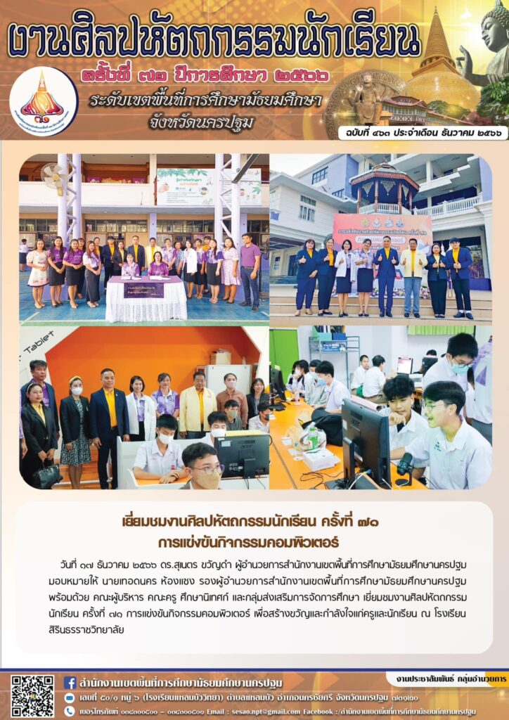 เยี่ยมชมงานศิลปหัตถกรรมนักเรียน ครั้งที่ ๗๑ การแข่งขันกิจกรรมคอมพิวเตอร์ 12/17/202312/19/2023 ประชา สัมพันธ์ จดหมายข่าวเขต Views: 181 ประชา สัมพันธ์