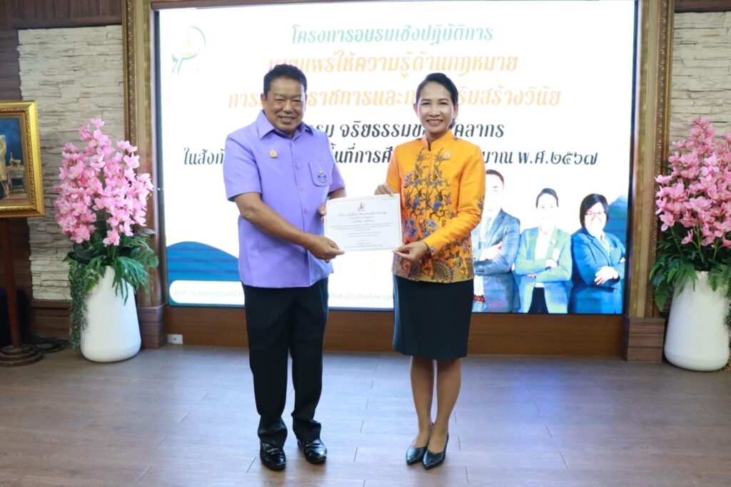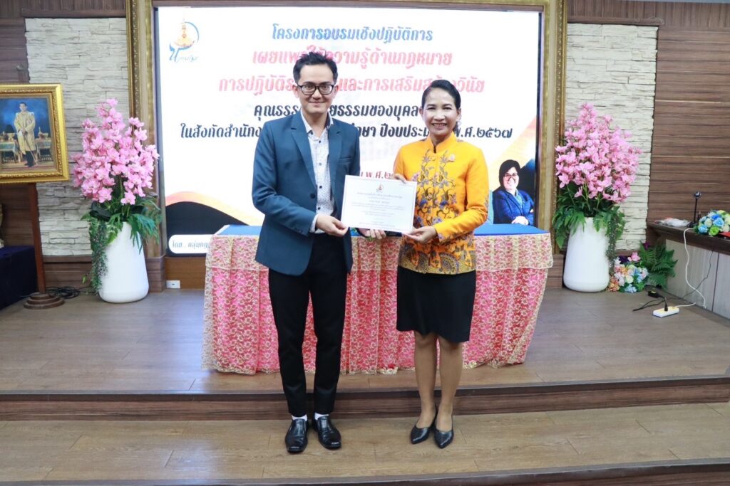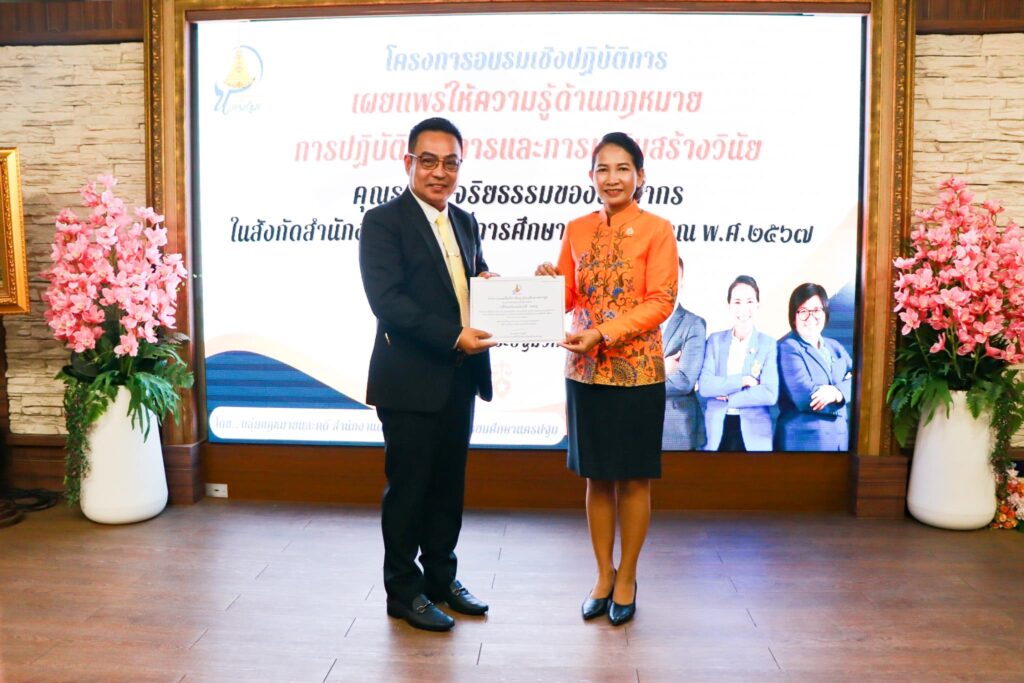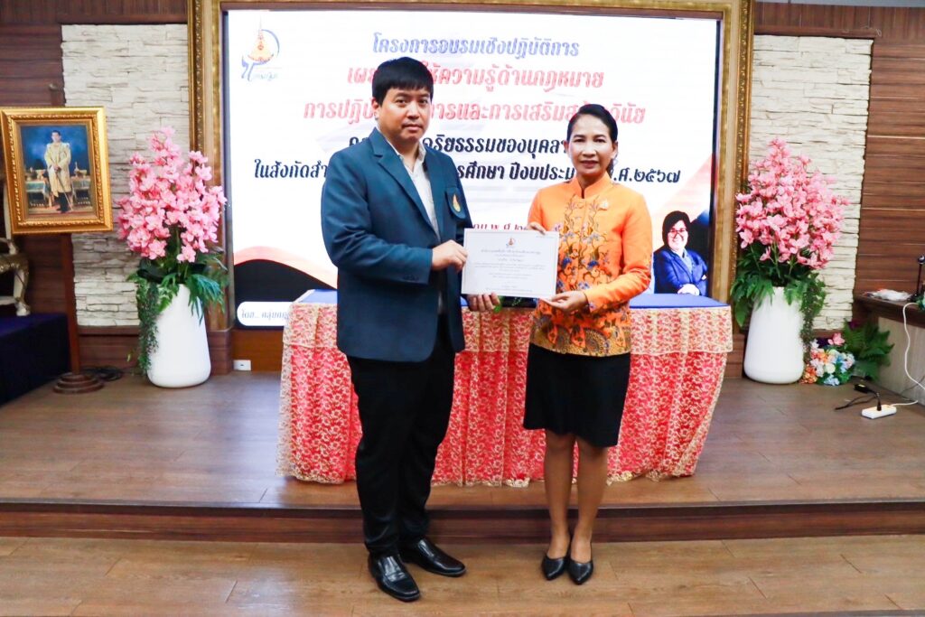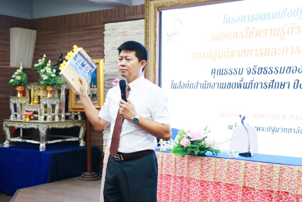 วันที่ ๑๘ พฤษภาคม ๒๕๖๗ ดร.สุเนตร ขวัญดำ ผู้อำนวยการสำนักงานเขตพื้นที่การศึกษามัธยมศึกษานครปฐม เป็นประธานเปิดโครงการอบรมเชิงปฏิบัติการเผยแพร่ให้ความรู้ด้านกฎหมายการปฏิบัติราชการและการเสริมสร้างวินัยคุณธรรม จริยธรรมของบุคลากร ในสังกัดสำนักงานเขตพื้นที่การศึกษา ปีงบประมาณ พ.ศ.๒๕๖๗ โดยมี นายเทอดนคร ห้องแซง นางสาวกนกวรรณ การุญ รองผู้อำนวยการสำนักงานเขตพื้นที่การศึกษามัธยมศึกษานครปฐม พร้อมด้วย ผู้บริหารสถานศึกษา ข้าราชการครูและบุคลากรทางการศึกษา ในสังกัดสำนักงานเขตพื้นที่การศึกษามัธยมศึกษานครปฐม เข้าร่วมการอบรม ณ โรงเรียนพระปฐมวิทยาลัย อำเภอเมือง จังหวัดนครปฐม